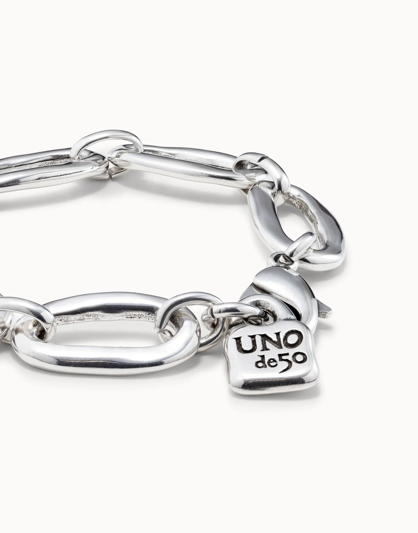 Sterling silver-plated bracelet with oval links. This jewel is handmade in Spain and represents the unmistakable style of UNOde50.