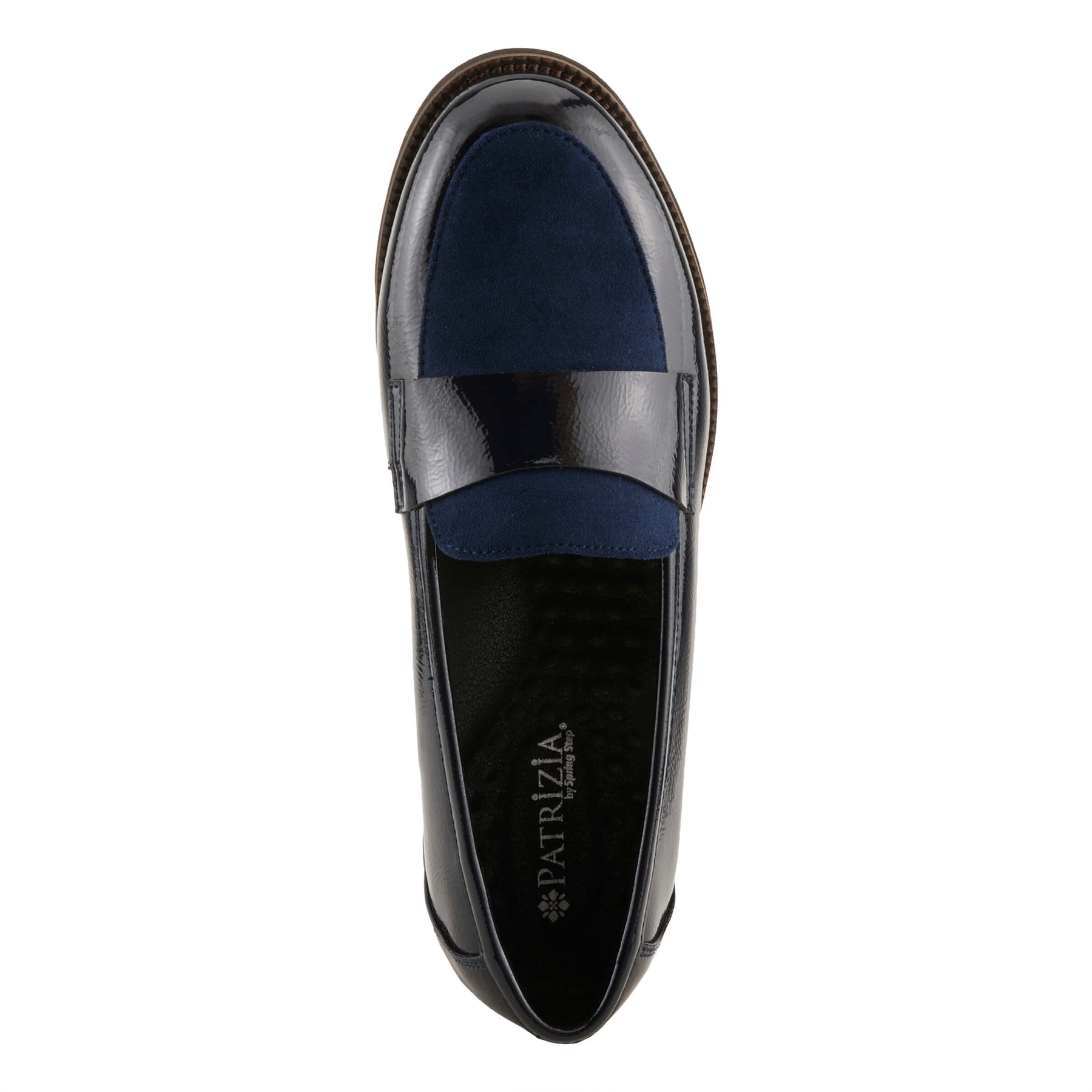 PATRIZIA Style: NOLDIN A modern take on a timeless classic, this loafer blends effortless sophistication with contemporary edge. Designed with a sleek combination of faux suede and faux patent leather, the contrast textures create a bold, fashion-forward look. The slip-on design ensures easy wear, while the cushioned insole provides all-day comfort. A low stacked heel and durable outsole add stability and versatility, making this loafer perfect for both work and casual wear. Elevate your style with this chic and polished essential that seamlessly transitions from day to night. Upper: Faux Leather,Microsuede Lining: Faux Leather Insole: Faux Leather Outsole: EVA Closure: Slip-on Heel Height: 1" Features: - Faux Suede & Faux Patent Leather Upper – A striking mix of textures for a sophisticated look. - Classic Slip-On Design – Offers effortless wear with a timeless appeal - Cushioned Insole – Ensures comfort for all-day wear - Durable Outsole – Provides traction and long-lasting wear - Fits true to size.