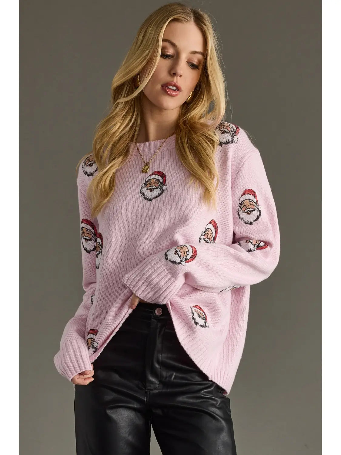Lt. pink knit sweater Santa face design on the front & back 100% Acrylic