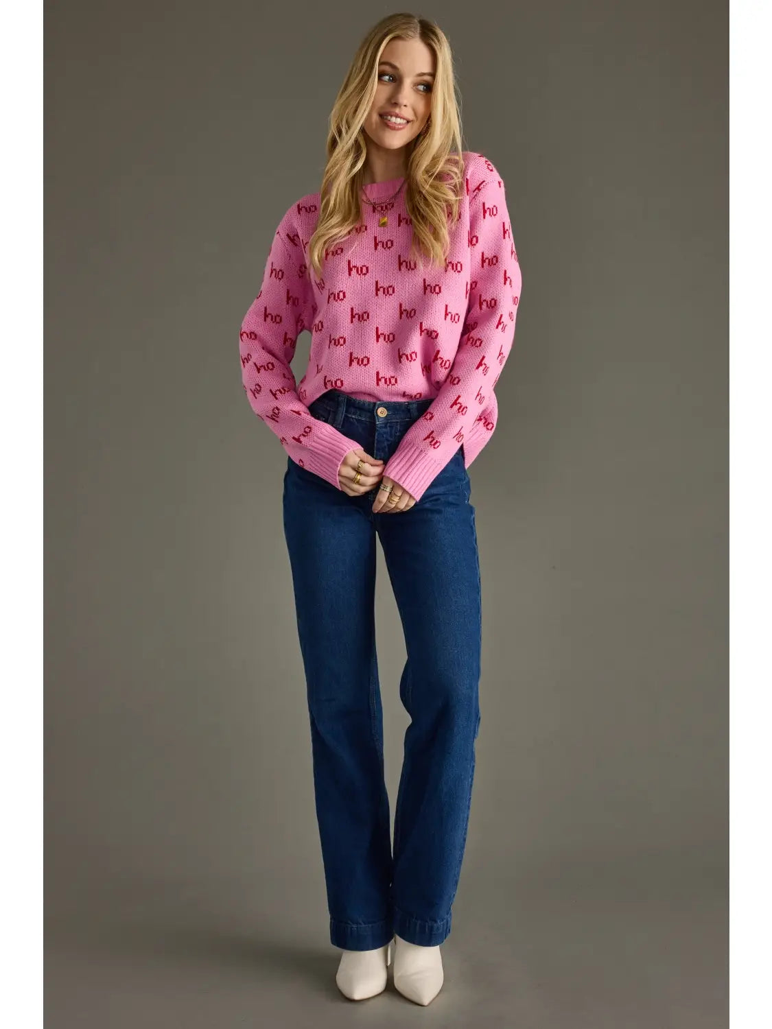 Pink knit sweater Red "ho ho ho" text on the front 100% Acrylic