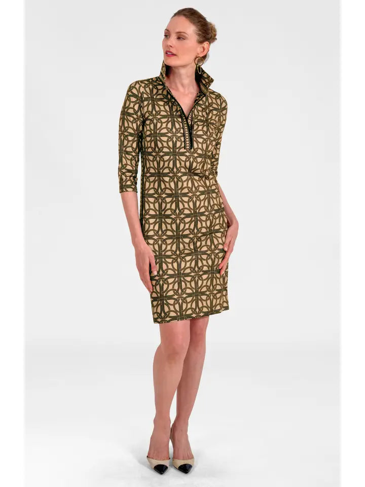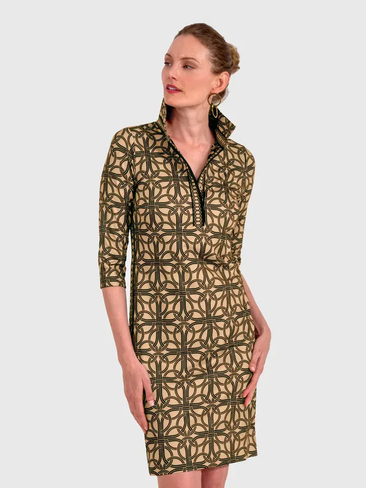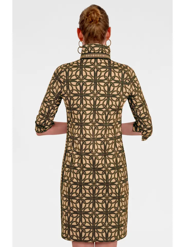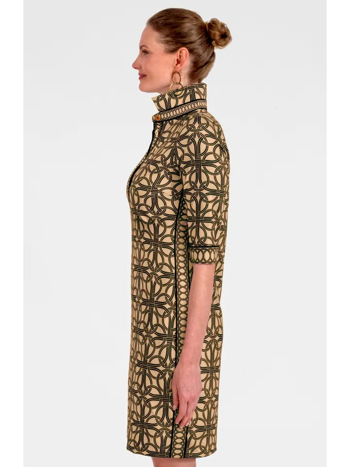 36" length - 3/4 Sleeves/ Optional Coordinating Turn Back Cuffs - Shiny Gold Buttons - Coordinating Fabric on Inside Back panel - 4" Hand Hem Fabric & Care - Jersey 95% Poly/ 5% Elastane - Machine Wash Cold/ Tumble Dry Or Dry Clean