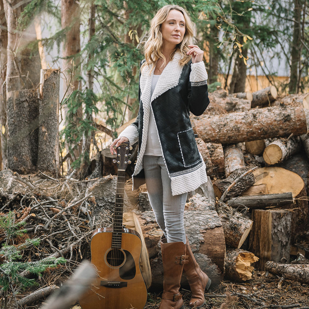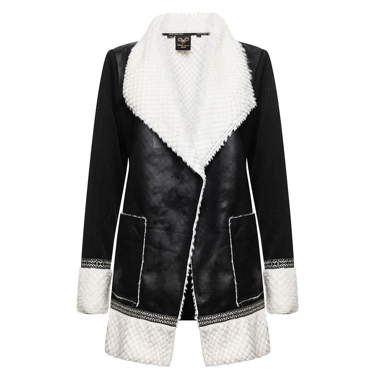 Keep your cold weather wardrobe on the cutting edge of current trends with the Wooly Bully VIP Wrap Jacket. This luxe outerwear option comes complete with textured pebble fur lining, which offers elegant contrast while also keeping you exceptionally warm in the cold. Along with a chic wrapped design and dramatic collar detail, it features a distressed faux suede exterior so you can easily create an upscale, vintage inspired ensemble. Deep patch pockets at the sides provide the perfect finishing touch.